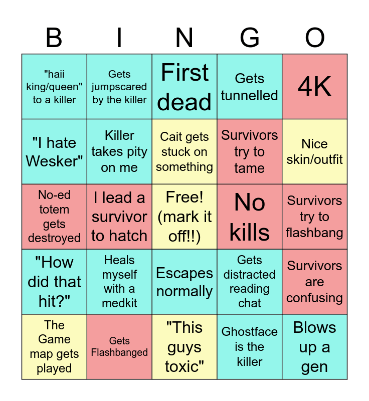 survivor bingo | DBD survivor bingo | AseRebellion(TTV) Killer Stream Bingo | DBD BINGO | Dead by daylight killer bingo