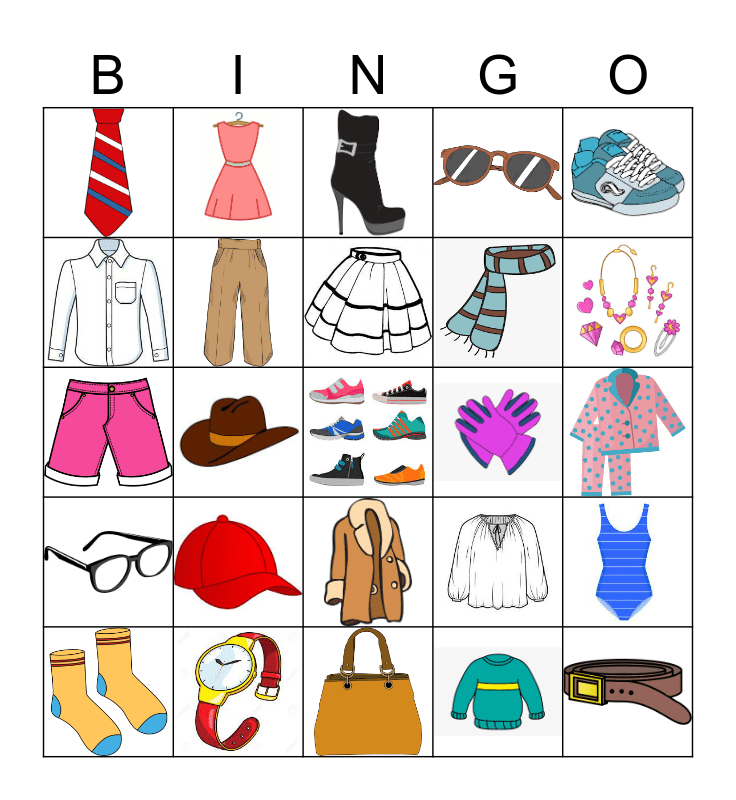 die Kleidung Bingo Card
