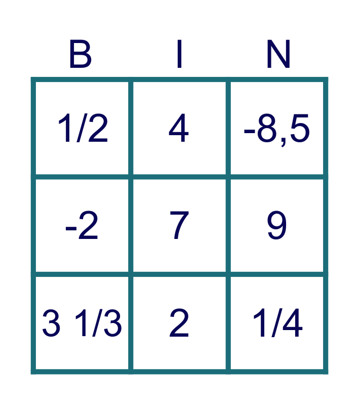 ⚠ This card has duplicate items: 0,5 (2), 3/2 (2), 4 (2), -10 (2), 2,5 (2)