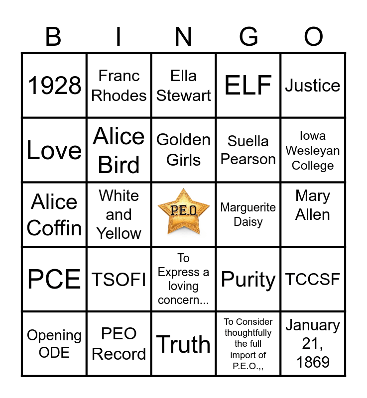 P.E.O. Chp. J 3 | P.E.O. | P.E.O. | P.E.O HISTORY | PEO Founder's Day Bingo