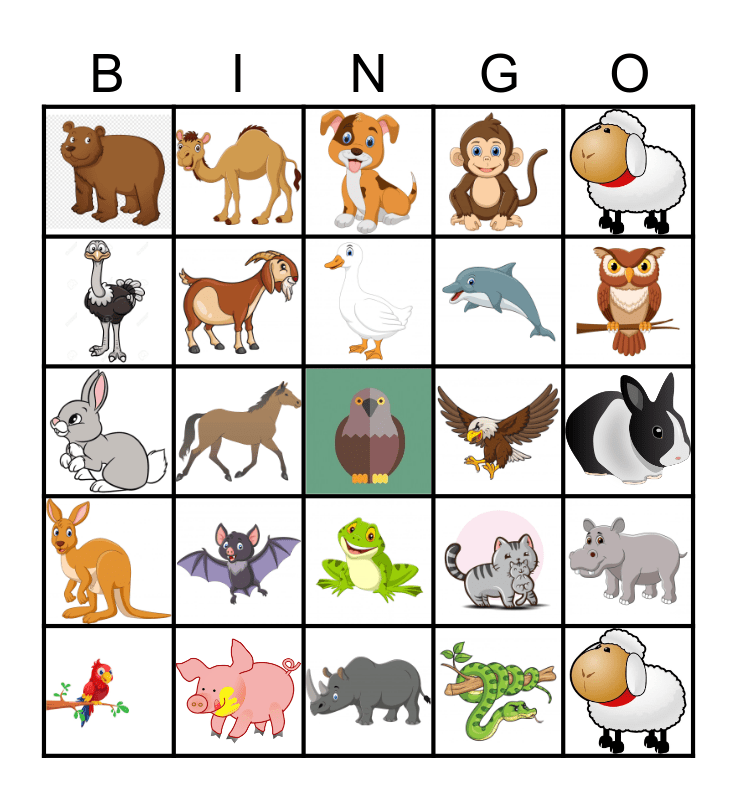 Animal Bingo Card
