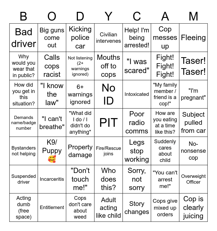 Bodycam Bingo | BodyCam Bingo | Body cam bingo | Cop Bodycam Bingo | Cop Arrest Bingo