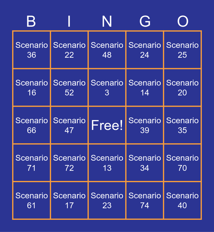 This bingo card has a free space and 75 words: Scenario 1, Scenario 2, Scenario 3, Scenario 4, Scenario 5, Scenario 6, Scenario 7, Scenario 8, Scenario 9, Scenario 10, Scenario 11, Scenario 12, Scenario 13, Scenario 14, Scenario 15, Scenario 16, Scenario 17, Scenario 18, Scenario 19, Scenario 20, Scenario 21, Scenario 22, Scenario 23, Scenario 24, Scenario 25, Scenario 26, Scenario 27, Scenario 28, Scenario 29, Scenario 30, Scenario 31, Scenario 32, Scenario 33, Scenario 34, Scenario 35, Scenario 36, Scenario 37, Scenario 38, Scenario 39, Scenario 40, Scenario 41, Scenario 42, Scenario 43, Scenario 44, Scenario 45, Scenario 46, Scenario 47, Scenario 48, Scenario 49, Scenario 50, Scenario 51, Scenario 52, Scenario 53, Scenario 54, Scenario 55, Scenario 56, Scenario 57, Scenario 58, Scenario 59, Scenario 60, Scenario 61, Scenario 62, Scenario 63, Scenario 64, Scenario 65, Scenario 66, Scenario 67, Scenario 68, Scenario 69, Scenario 70, Scenario 71, Scenario 72, Scenario 73, Scenario 74 and Scenario 75.