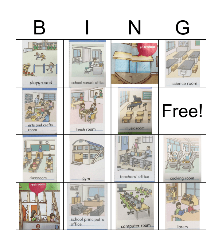 This bingo card has 16 images and 1 words: Free!.