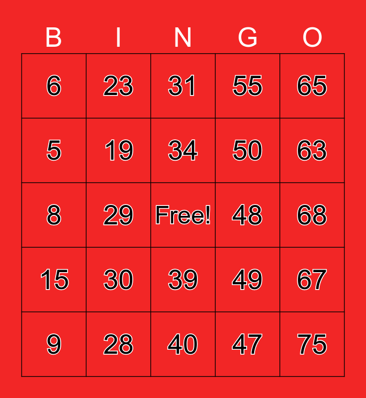 This bingo card has a free space and 75 words: 1, 16, 31, 46, 61, 2, 17, 32, 47, 62, 3, 18, 48, 63, 4, 19, 33, 49, 64, 5, 20, 34, 50, 65, 6, 21, 35, 51, 66, 7, 22, 36, 52, 67, 8, 23, 37, 53, 68, 9, 24, 38, 54, 69, 10, 25, 39, 55, 70, 11, 26, 40, 56, 71, 12, 27, 41, 57, 72, 13, 28, 42, 58, 73, 14, 29, 43, 59, 74, 15, 30, 44, 60, 75 and 45.