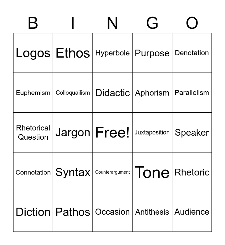 Junior English BINGO | Rhetorical Analysis Bingo | Persuasive Writing Bingo! | AP Lang Bingo Review | Rhetoric Bingo