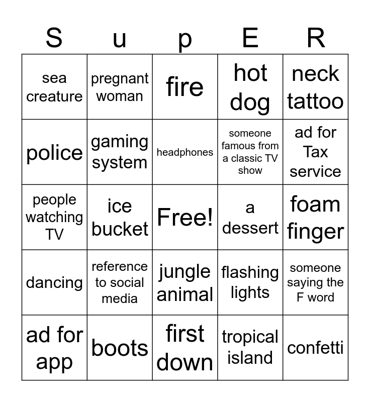 Super Bowl LVIII | Superbowl 2026 | Thanksgiving | Super Bowl LIX | "Super" Bowl Commercial Bingo