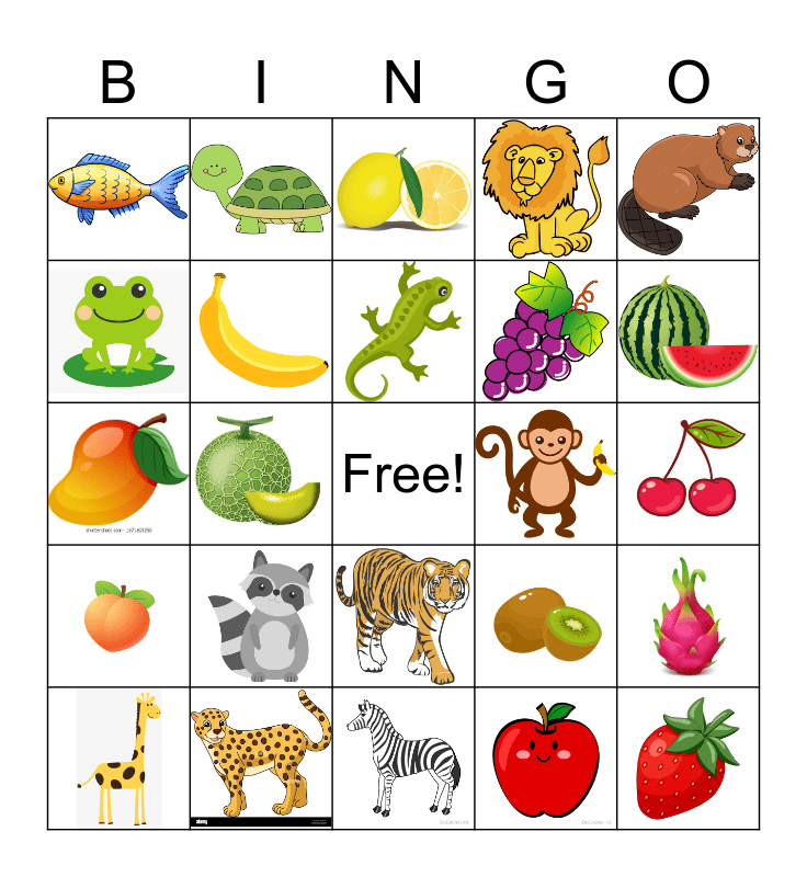 Animals and fruit! Bingo Card