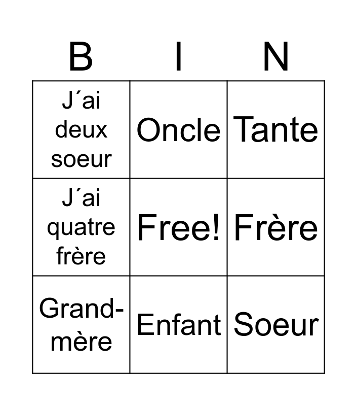 La famille | La famille | Famille | Famille | Famille Bingo