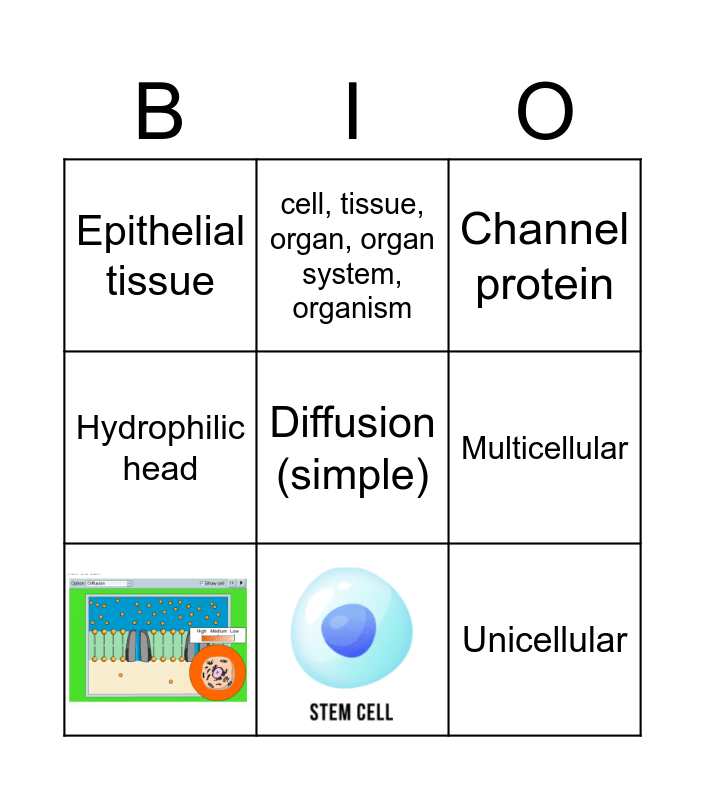 Biology Bingo | Cell Transport | Human Biology and Cellular Processes | Human Biology and Cellular Processes | cells