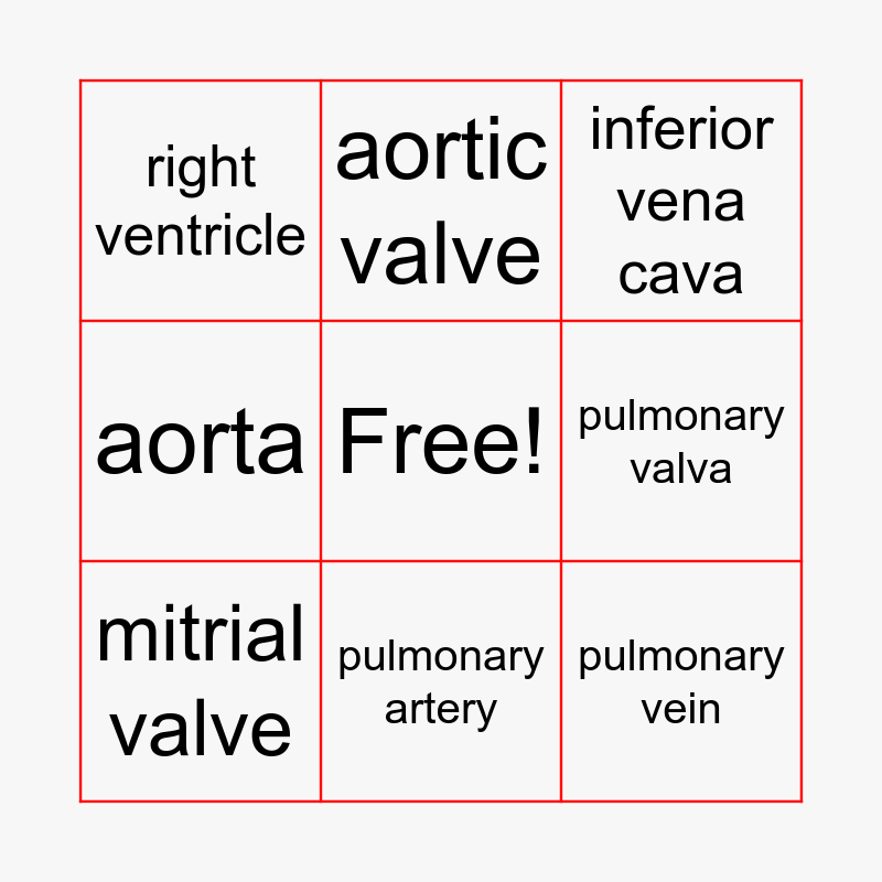HEART BINGO | Anatomy Bingo | Circulatory System | The Heart | Structure of the Heart