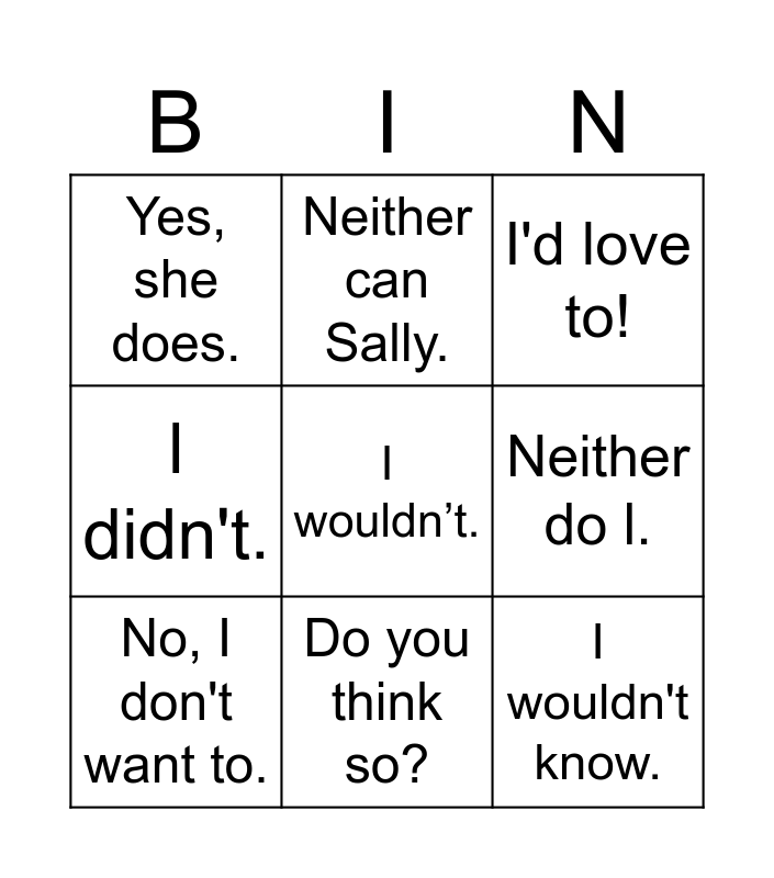 So.../Neither... Bingo | Bingo | So and Neither | Neither/So | AGREEING x DISAGREEING