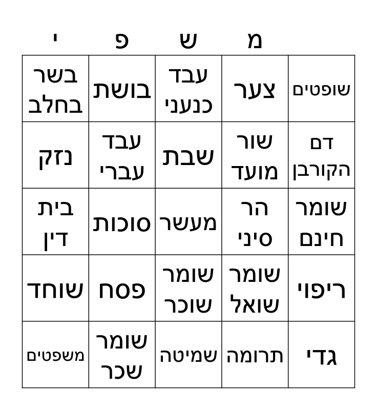פרשת משפטים | פרשת משפטים | בינגו השומרים | בינגו תנ"כי - שלישי שלי | בינגו תנ"כי - שלישי שלי