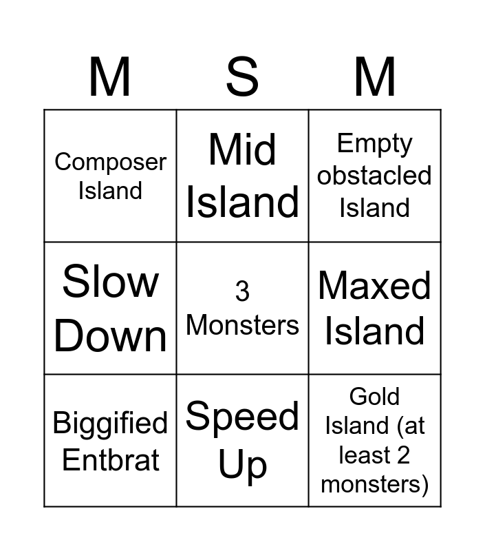 MSM | MSM random islands BINGO | MSM | my singing monsters | msm bingo 1