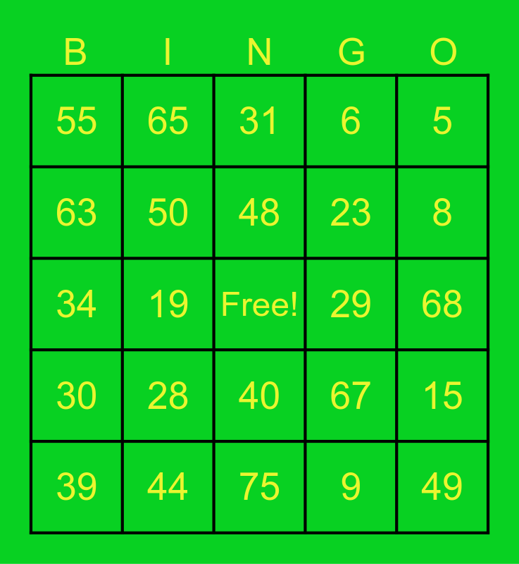 This bingo card has a free space and 75 words: 1, 16, 31, 46, 61, 2, 17, 32, 47, 62, 3, 18, 48, 63, 4, 19, 33, 49, 64, 5, 20, 34, 50, 65, 6, 21, 35, 51, 66, 7, 22, 36, 52, 67, 8, 23, 37, 53, 68, 9, 24, 38, 54, 69, 10, 25, 39, 55, 70, 11, 26, 40, 56, 71, 12, 27, 41, 57, 72, 13, 28, 42, 58, 73, 14, 29, 43, 59, 74, 15, 30, 44, 60, 75 and 45.