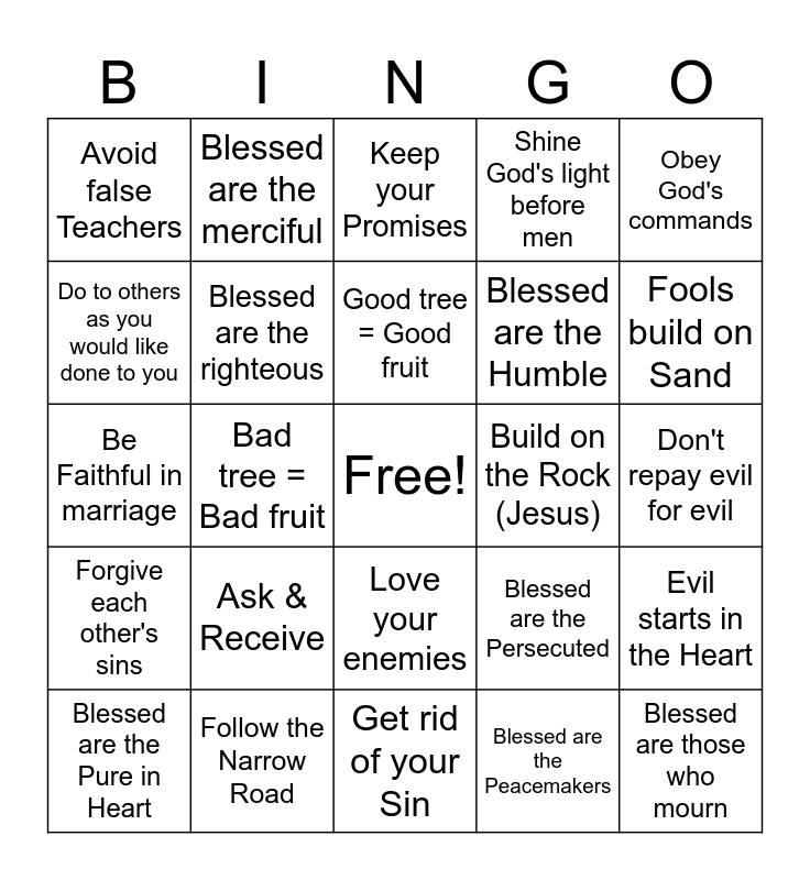 Sermon on the Mount | Sermon on tBlehe Mount Bingo | Sermon on the Mount | Sermon on the Mount | Ten Commandments & Beatitudes Bingo