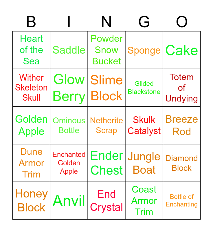 MC Bingo | minecraft bingo | Minecraft Item Hunt | Minecraft rare item bingo | Minecraft Item Bingo