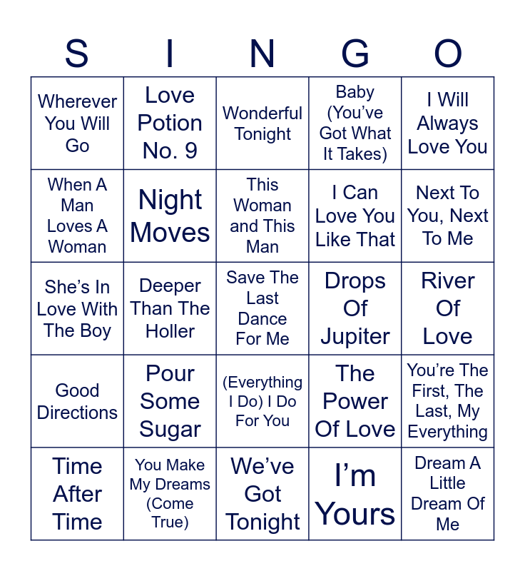 DATE NIGHT | Valentine's SINGO | Classic Love Songs Bingo | Classic Love Songs Bingo | Classic Love Songs Bingo
