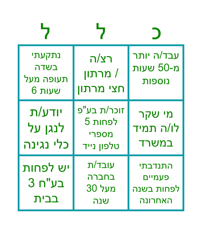 ⚠ This card has duplicate items: יש לו/ה תאומים/ות במשפחה (2), נתקעתי בשדה תעופה מעל 6 שעות (2), מי שקר לו/ה תמיד במשרד (2), רצ/ה מרתון / חצי מרתון (2)
