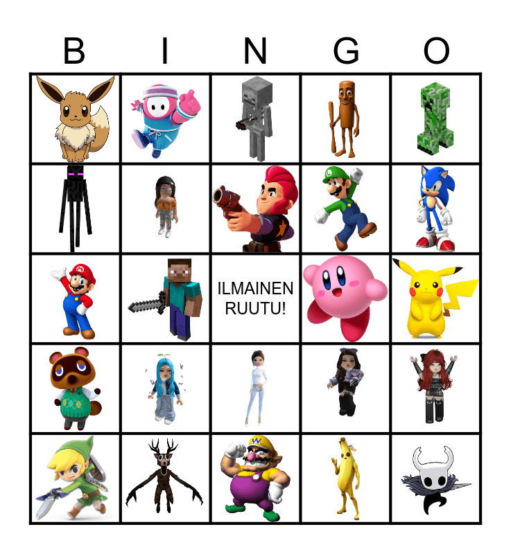 This bingo card has 24 images and a free space.