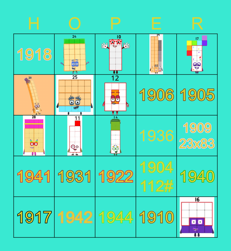 This bingo card has 30 images and 45 words: 1901 291th prime, 1902, 1903, 1904 112#, 1905, 1906, 1907 292th prime, 1908, 1909 23x83, 1910, 1911, 1912, 1913 293th 62th Prime, 1914 174th fooball, 1915, 1916 cartoon network, 1917, 1918, 1919, 1920, 1921 113@, 1922, 1923, 1924, 1925, 1926, 1927, 1928, 1929, 1930, 1931, 1932, 1933, 1934, 1935, 1936, 1937, 1938 114, 1939, 1940, 1941, 1942, 1943, 1944 and 1945.