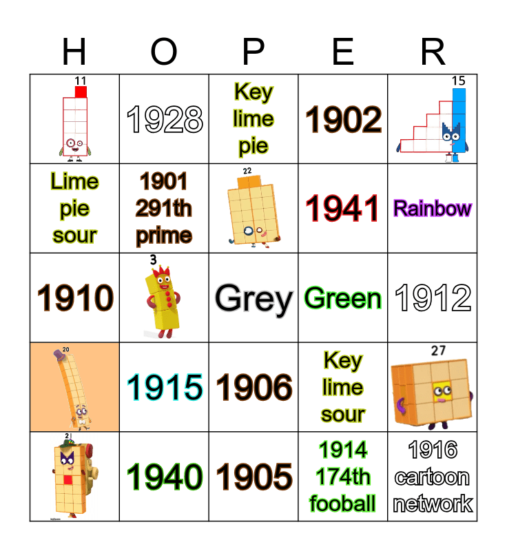 This bingo card has 30 images and 67 words: 1901 291th prime, 1902, 1903, 1904 112#, 1905, 1906, 1907 292th prime, 1908, 1909 23x83, 1910, 1911, 1912, 1913 293th 62th Prime, 1914 174th fooball, 1915, 1916 cartoon network, 1917, 1918, 1919, 1920, 1921 113@, 1922, 1923, 1924, 1925, 1926, 1927, 1928, 1929, 1930, 1931, 1932, 1933, 1934, 1935, 1936, 1937, 1938 114, 1939, 1940, 1941, 1942, 1943, 1944, 1945, Red, Blue, Yellow, Green, Orange, Purple, Rainbow, Black, White, Pink, Brown, Grey, Lime, Key lime, Lime pie, Key lime pie, Lime & lemon, Lime sour lemon sour, Key lime sour, Lime pie sour, Key lime sour and Key lime pie sour.