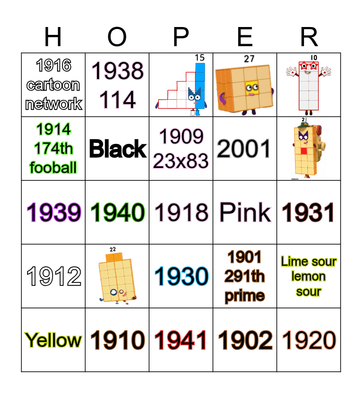 This bingo card has 30 images and 73 words: 1901 291th prime, 1902, 1903, 1904 112#, 1905, 1906, 1907 292th prime, 1908, 1909 23x83, 1910, 1911, 1912, 1913 293th 62th Prime, 1914 174th fooball, 1915, 1916 cartoon network, 1917, 1918, 1919, 1920, 1921 113@, 1922, 1923, 1924, 1925, 1926, 1927, 1928, 1929, 1930, 1931, 1932, 1933, 1934, 1935, 1936, 1937, 1938 114, 1939, 1940, 1941, 1942, 1943, 1944, 1945, Red, Blue, Yellow, Green, Orange, Purple, Rainbow, Black, White, Pink, Brown, Grey, Lime, Key lime, Lime pie, Key lime pie, Lime & lemon, Lime sour lemon sour, Key lime sour, Lime pie sour, Key lime pie sour, 2001, 2002, 2003, 2004, 2005, 2006 and 2007.