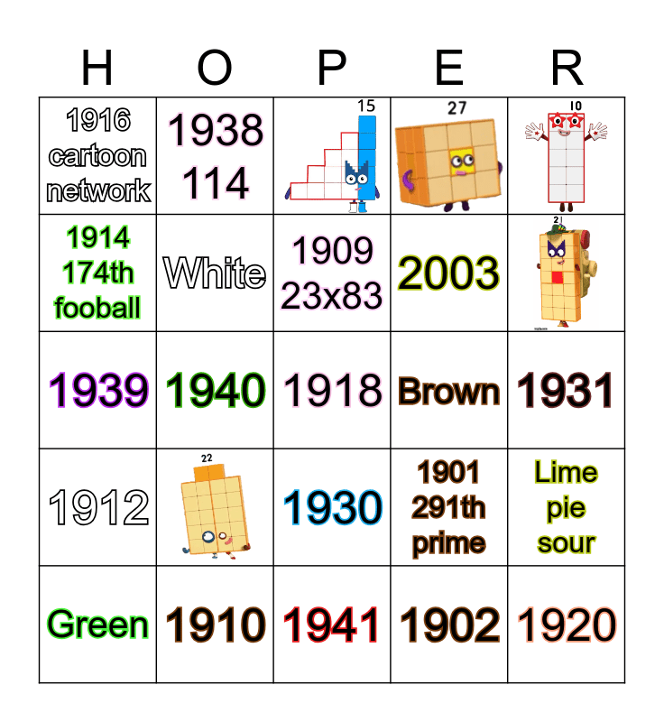 This bingo card has 30 images and 75 words: 1901 291th prime, 1902, 1903, 1904 112#, 1905, 1906, 1907 292th prime, 1908, 1909 23x83, 1910, 1911, 1912, 1913 293th 62th Prime, 1914 174th fooball, 1915, 1916 cartoon network, 1917, 1918, 1919, 1920, 1921 113@, 1922, 1923, 1924, 1925, 1926, 1927, 1928, 1929, 1930, 1931, 1932, 1933, 1934, 1935, 1936, 1937, 1938 114, 1939, 1940, 1941, 1942, 1943, 1944, 1945, Red, Blue, Yellow, Green, Orange, Purple, Rainbow, Black, White, Pink, Brown, Grey, Lime, Key lime, Lime pie, Key lime pie, Lime & lemon, Lime sour lemon sour, Key lime sour, Lime pie sour, Key lime pie sour, 2001, 2002, 2003, 2004, 2005, 2006, 2007, 2008 and 2009.