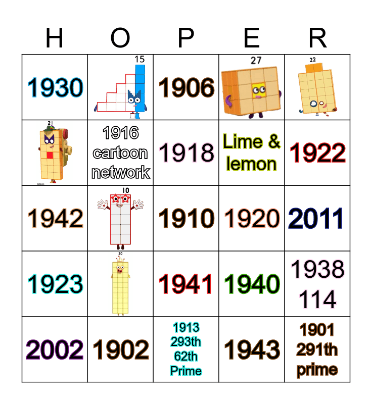 This bingo card has 30 images and 78 words: 1901 291th prime, 1902, 1903, 1904 112#, 1905, 1906, 1907 292th prime, 1908, 1909 23x83, 1910, 1911, 1912, 1913 293th 62th Prime, 1914 174th fooball, 1915, 1916 cartoon network, 1917, 1918, 1919, 1920, 1921 113@, 1922, 1923, 1924, 1925, 1926, 1927, 1928, 1929, 1930, 1931, 1932, 1933, 1934, 1935, 1936, 1937, 1938 114, 1939, 1940, 1941, 1942, 1943, 1944, 1945, Red, Blue, Yellow, Green, Orange, Purple, Rainbow, Black, White, Pink, Brown, Grey, Lime, Key lime, Lime pie, Key lime pie, Lime & lemon, Lime sour lemon sour, Key lime sour, Lime pie sour, Key lime pie sour, 2001, 2002, 2003, 2004, 2005, 2006, 2007, 2008, 2009, 2010, 2011 and 2012.