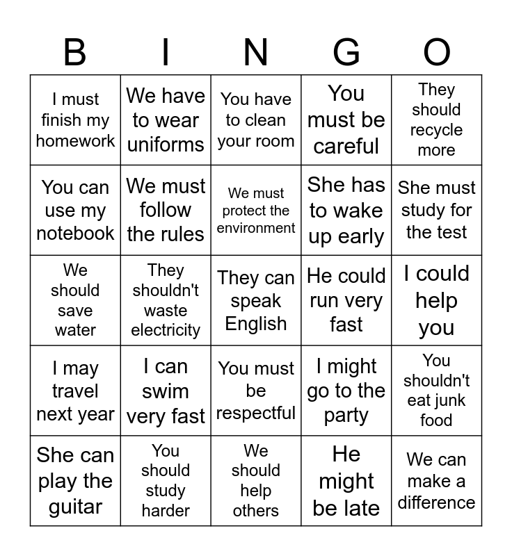 model verds bingo | Modal Verbs Bingo | Modal Verbs Bingo | BINGO | Modal Verbs BINGO