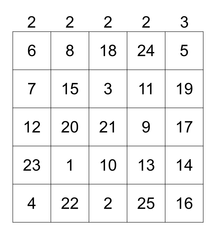 This bingo card has 25 words: 1, 2, 3, 4, 5, 6, 7, 8, 9, 10, 11, 12, 13, 14, 15, 16, 17, 18, 19, 20, 21, 22, 23, 24 and 25.