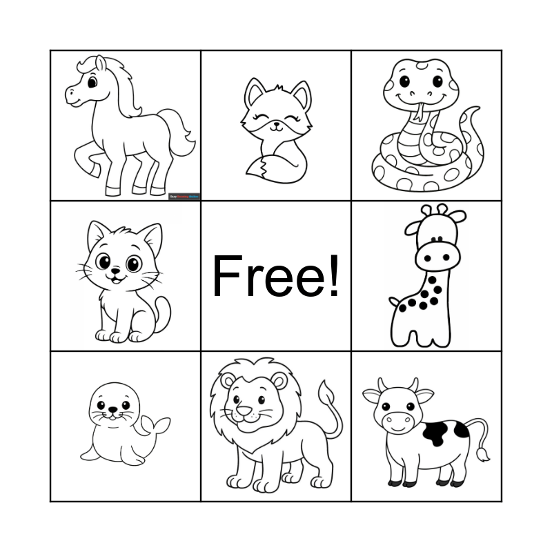This bingo card has 8 images and a free space.