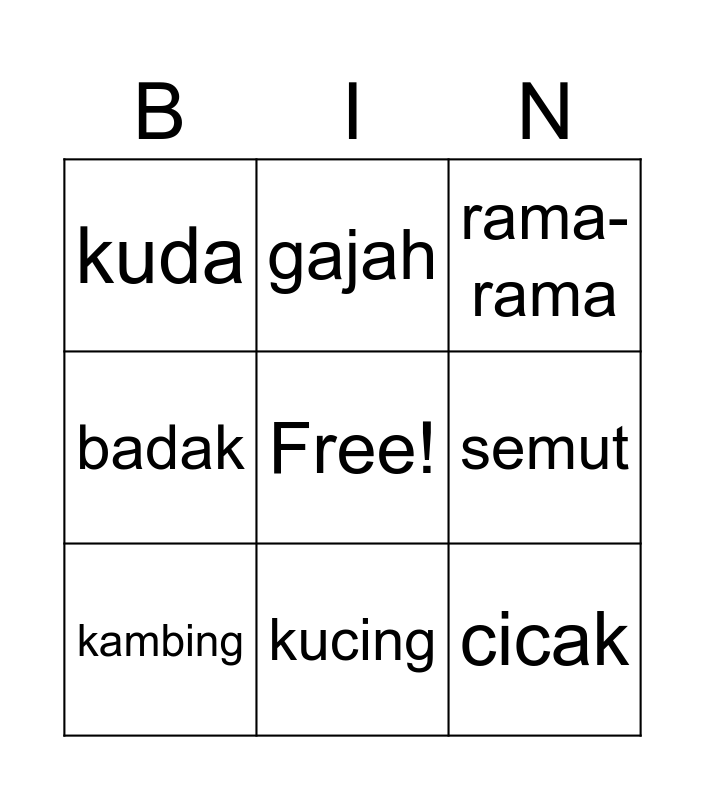 HAIWAN | Haiwan | Bingo Bahasa Melayu (Haiwan & Serangga) | Bingo Bahasa Melayu (Haiwan & Serangga) | Haiwan menjaga telur and menjaga anak.