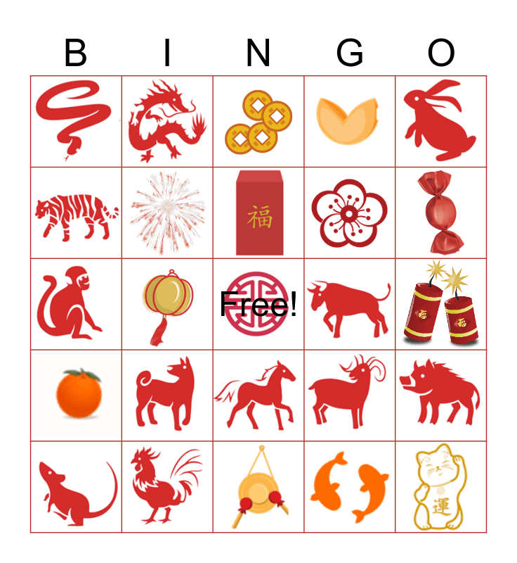 This bingo card has 24 images and a free space.