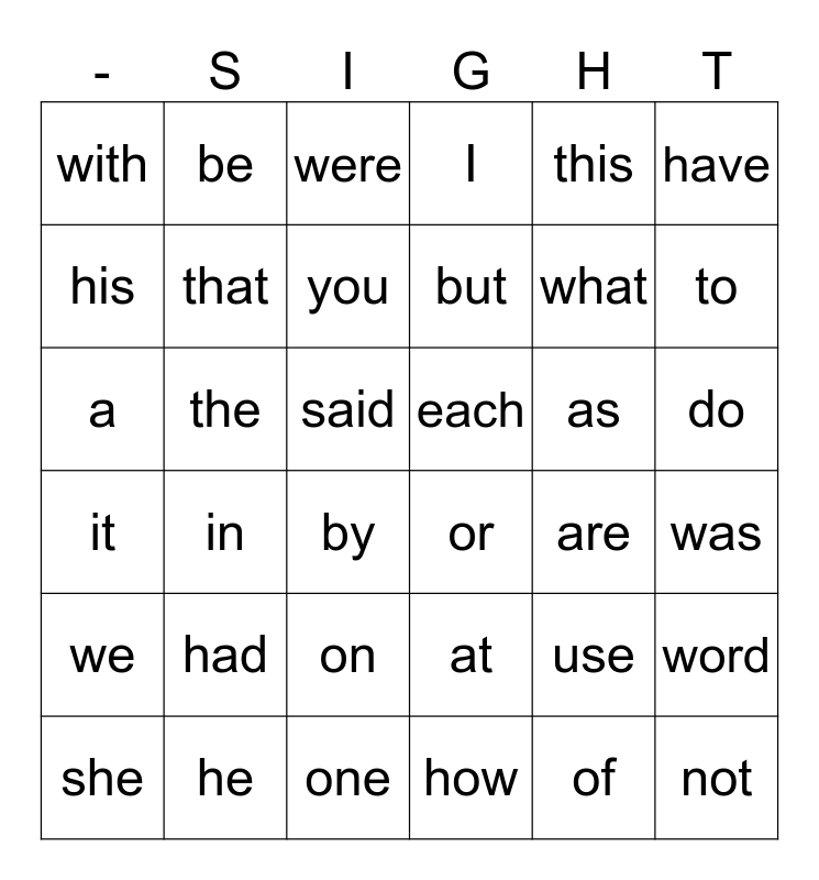 This bingo card has 47 words: Free!, a, and, are, as, at, be, for, have, he, his, I, in, it, of, on, that, the, they, this, to, was, with, you, all, but, by, can, do, each, from, had, how, not, one, or, said, she, there, use, we, were, what, when, which, word and your.