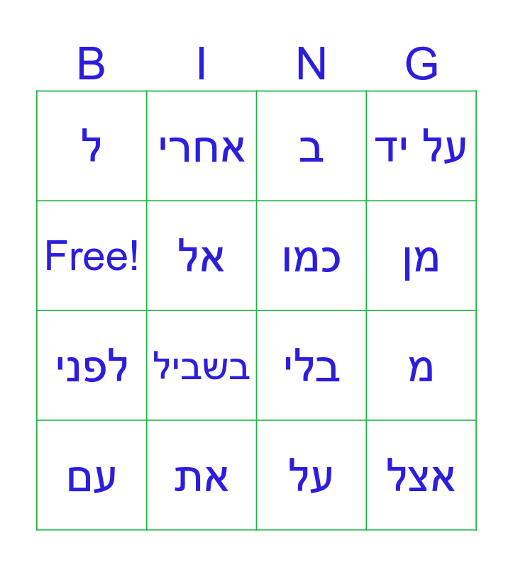 1מילות יחס ללא נטייה Bingo Card