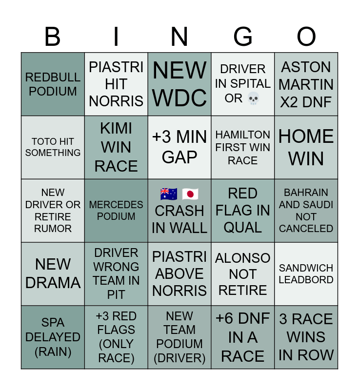 F1 2026 BINGO | F1 25 | F1 25 | F1 Bingo | F1 Season