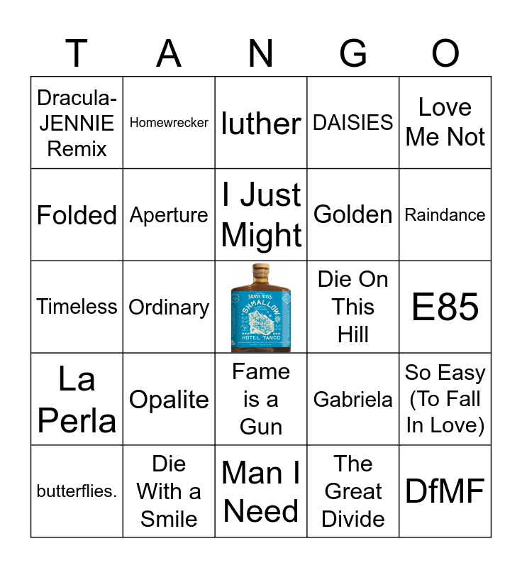 This bingo card has a free space and 50 words: Risk It All, DfMF, Stateside + Zara Larsson, Man I Need, Opalite, End of Beginning, Homewrecker, WHERE IS MY HUSBAND!, Folded, CHANEL, Aperture, DAISIES, So Easy (To Fall In Love), Gabriela, bittersweet, Choosin' Texas, I Just Might, Die On This Hill, The Fate of Ophelia, Love Me Not, Ordinary, The Great Divide, Dracula- JENNIE Remix, Golden, Tears, 12 to 12, Raindance, Drag Path, luther, Fame is a Gun, No Broke Boys, What You Saying, Messy, Midnight Sun, Die With a Smile, WILDFLOWER, White Keys, iloveitiloveitiloveit, Manchild, E85, FEVER DREAM, Dying for You, Who Knows, Sienna, butterflies., Timeless, Pink Pony Club, That's So True, La Perla and 4 RAWS.
