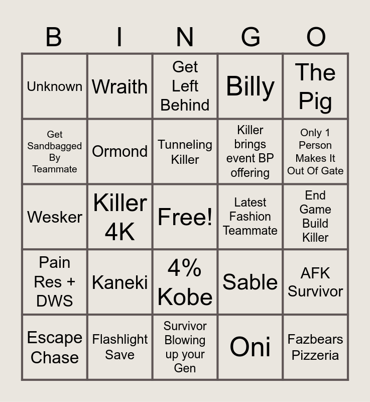 DBD Bingo | DBD Bingo | Dead By Daylight | Dead By Daylight | Dead By Daylight