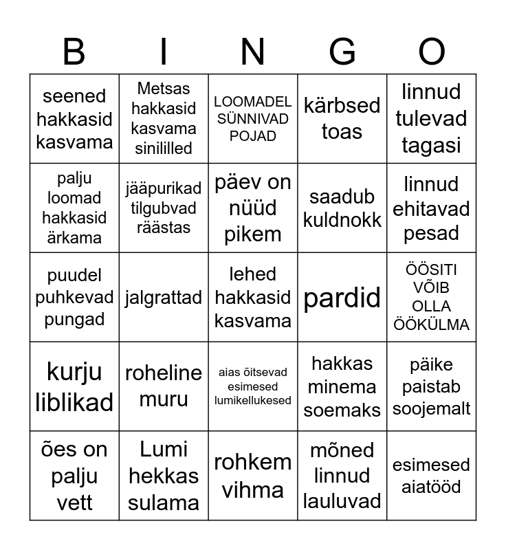 KEVAD | Kevade märgid | BINGO | Kevad | bingo of pedos