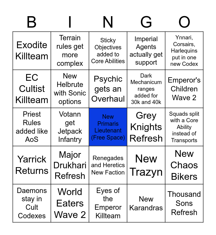 Wh40k 11ed bingo | 11th edition Warhammer | 11th Edition 40k Bingo | Overwatch spotlight | Overwatch Spotlight Predictions