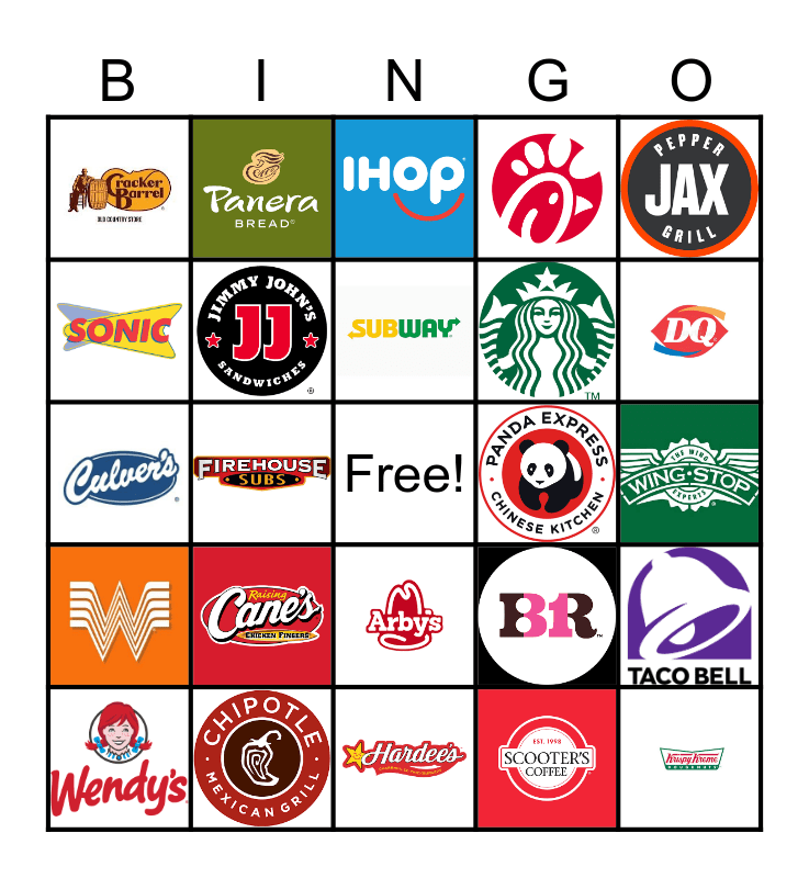 Fast Food Bingo Card