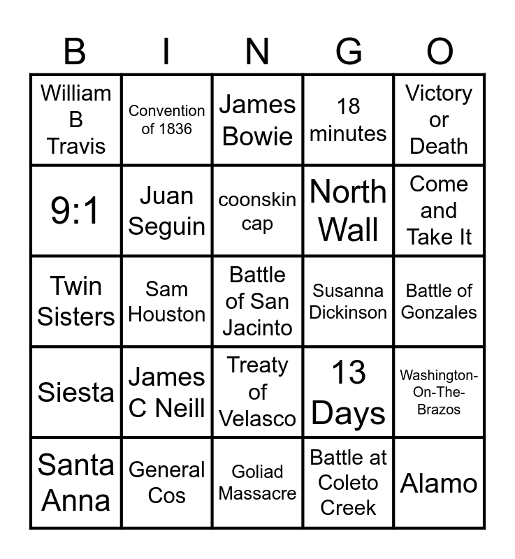 TEXAS REVOLUTION | Texas Revolution | Texas Revolution | Texas Revolution Bingo | Texas Revolution