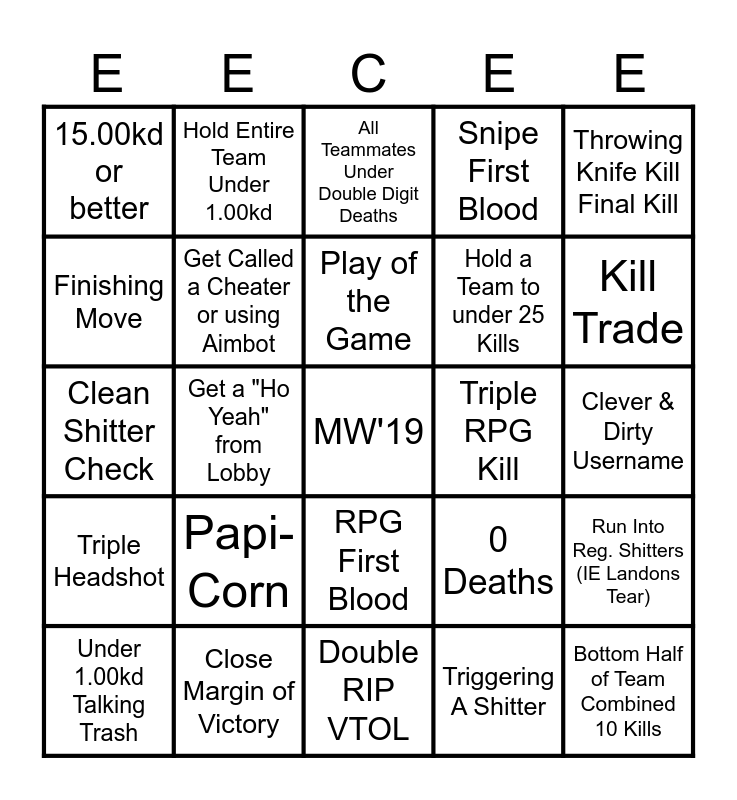 EECCEE by GHEY WHEAPON MW ONLY | EECCEE by GHEY WHEAPON | EECCEE by GHEY WHEAPON | League Bingo | SND Bingo
