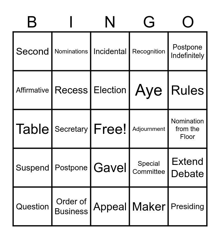 Parli Pro | Parliamentary Procedure | Minute Bingo | Parli Pro Bingo | Minute's BINGO