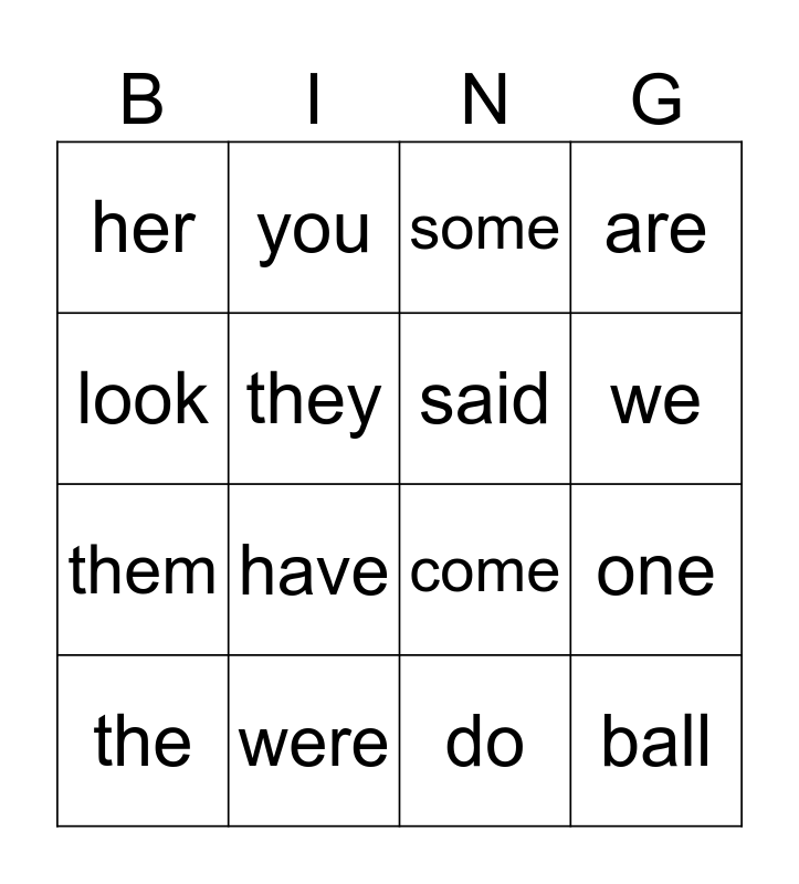 This bingo card has 46 words: Free!, the, my, as, is, was, you, to, they, that, said, are, he, she, me, be, we, were, has, look, one, his, her, them, there, have, of, with, all, ball, little, go, so, this, put, as, do, very, what, where, want, some, come, down, for and or.