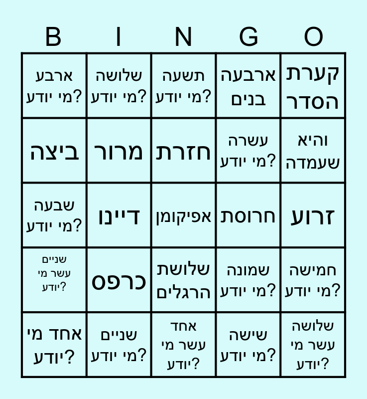 בינגו לפסח | שם המספר | בינגו - פסח | בינגו היכרות | חג הפסח