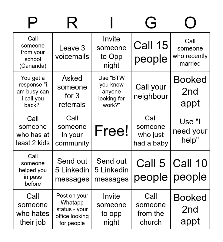 PRIgo March 24 2026 | PRIGO | Prospecting Bingo | Make an attempt! | Make an attempt!