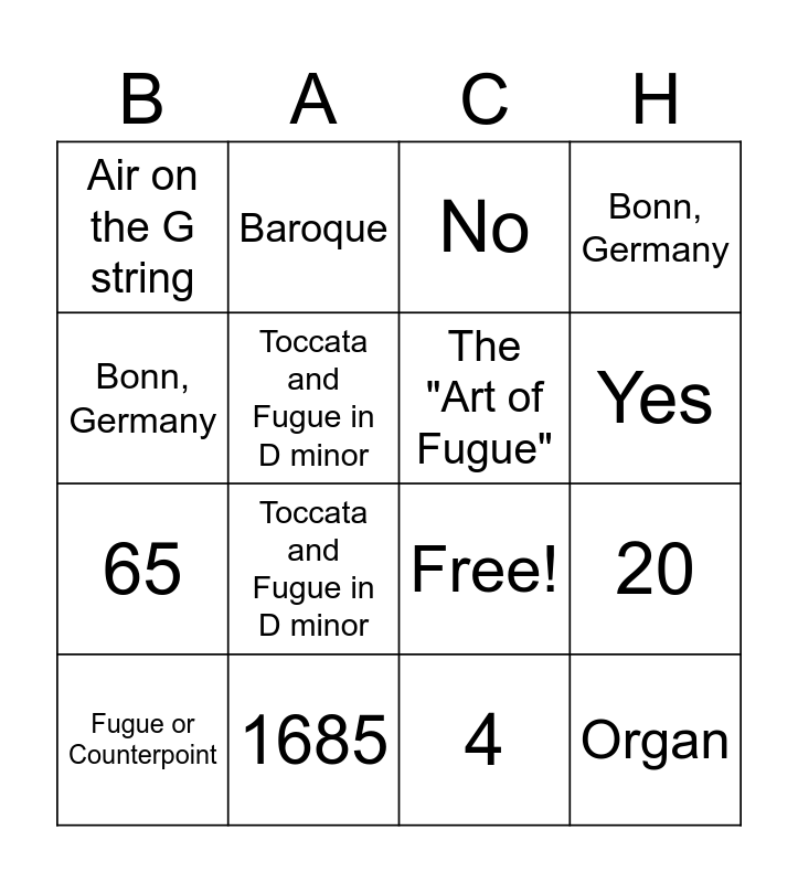 ⚠ This card has duplicate items: Fugue or Counterpoint (2), 20 (2), Bonn, Germany (2), Toccata and Fugue in D minor (2), 1750 (2)