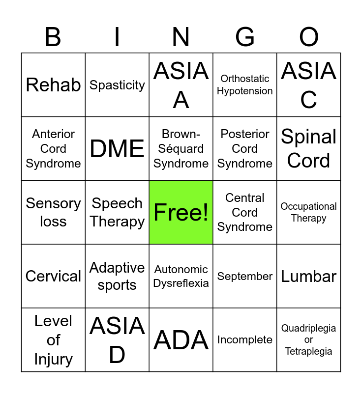 Spinal Cord Injury Bingo - Regional Once Health Inpatient Rehab | Spinal Cord Injury Bingo - Regional Once Health Inpatient Rehab | Spinal Cord Injury | Where is the lesion?! | disABILITY Awareness Week